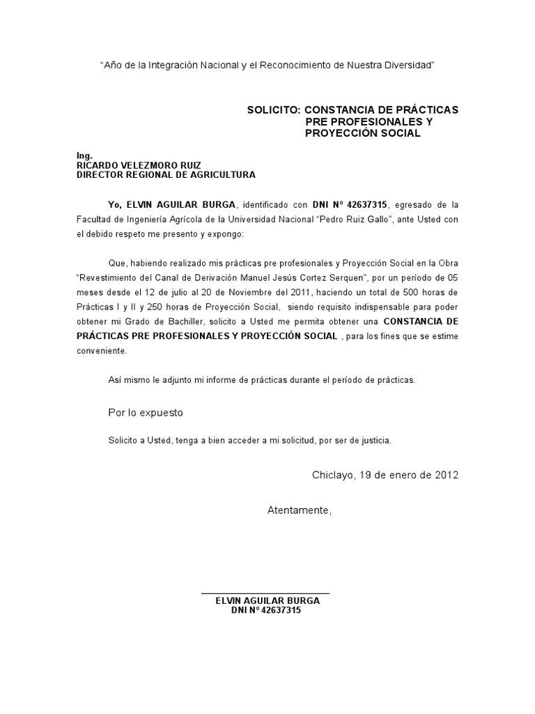 Solicitud Para Carta de Presentacion - Practicas Pre Profesionales Solicitud Constancia de Prcticas Pre Profesionales solicitud practicas MUNICIPALIDAD DE HUANCAYO-DIANAdoc. Consejos para escribir una carta de motivacin para prcticas profesionales. A continuacin te mostramos un ejemplo de carta para solicitar prcticas profesionales quizs la puedas usar como base para redactar tu propia carta cuando la necesites.