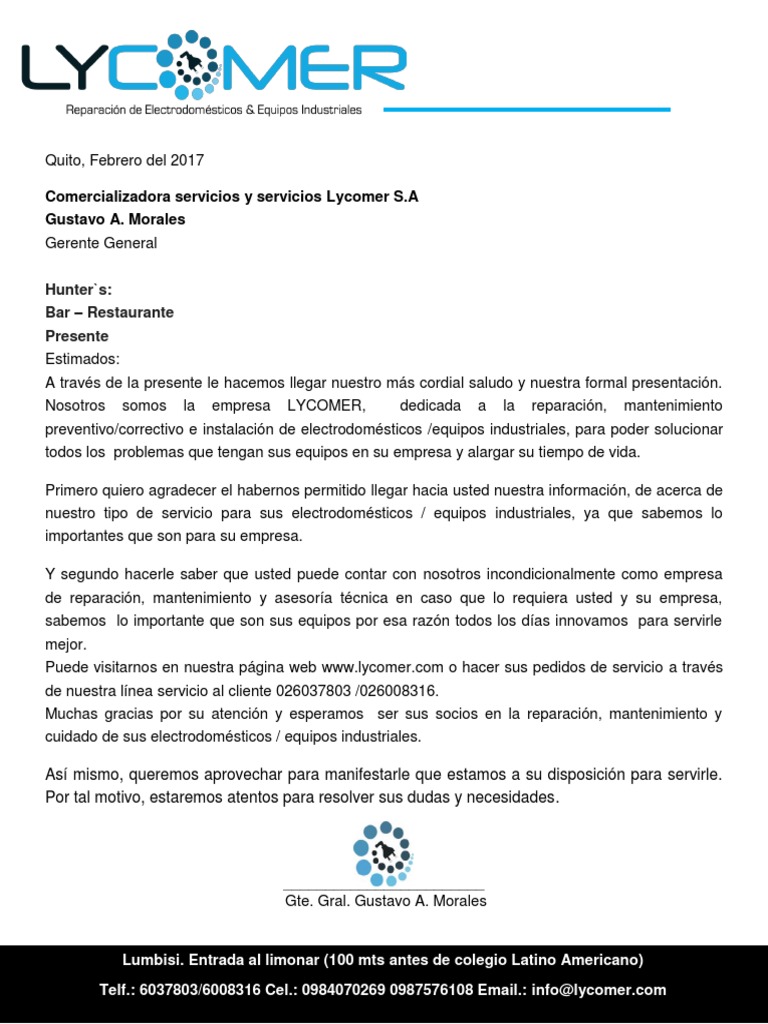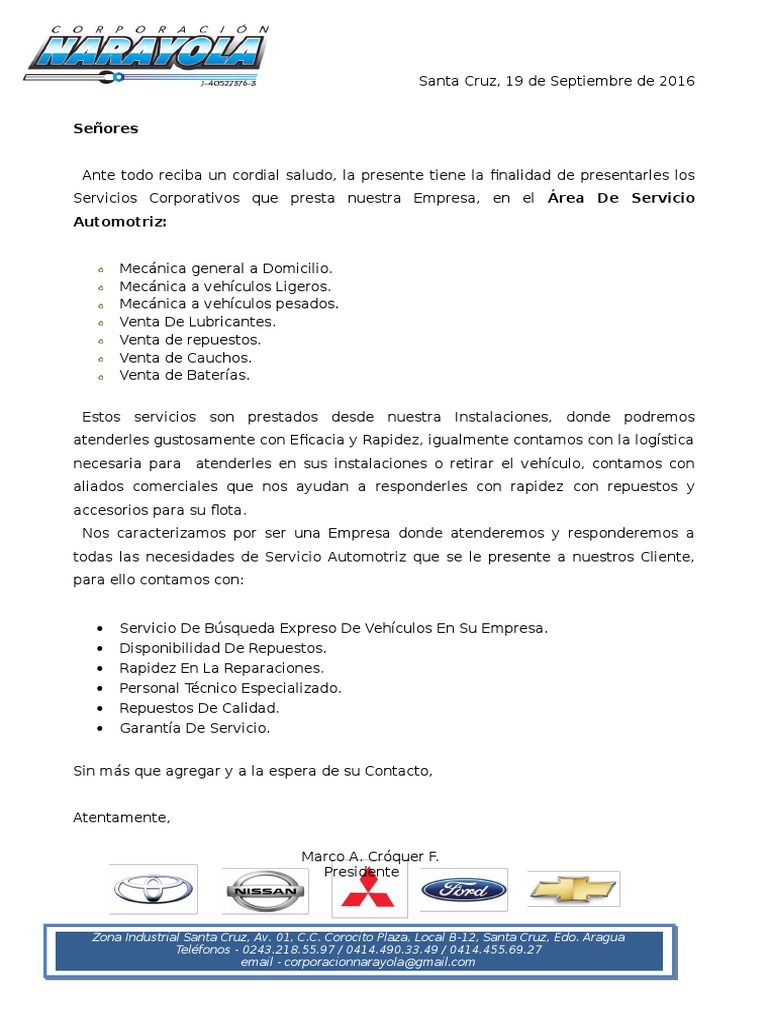 Carta De Presentacion De Una Empresa De Servicios De Mantenimiento Lionel Cowan Carta Exemplo